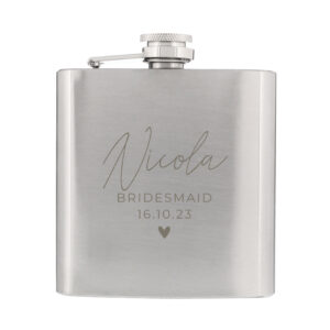 - This 6oz stainless steel hip flask can be engraved with the following Line 1 – 12 characters (As entered – Please avoid using fixed uppercase)