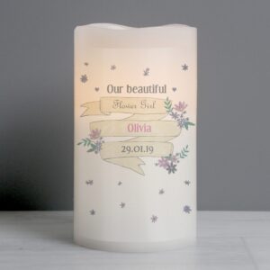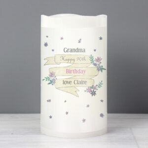 You can personalise the front of this Garden Bloom LED candle with 4 lines of text up to 15 characters per line.