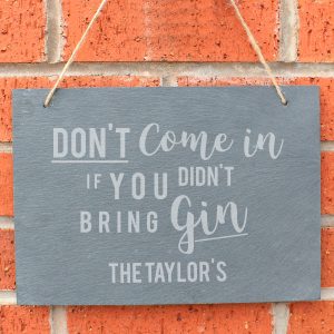 - The words ‘Don’t come in if you didn’t bring Gin’ are fixed text Please note all personalisation will appear in fixed upper case.