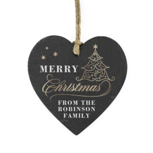 - Crafted from high-quality natural slate, this heart-shaped ornament features a luxurious Christmas tree design, making it a standout piece on any display.