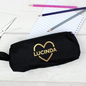 This stylish Personalised Gold Heart Pencil Case is perfect for keeping all of your favourite stationary safe. Ideal for Christmas, Back To School and Birthdays.