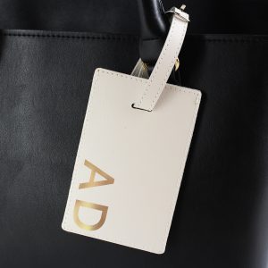 - The material of this luggage tag is leather.