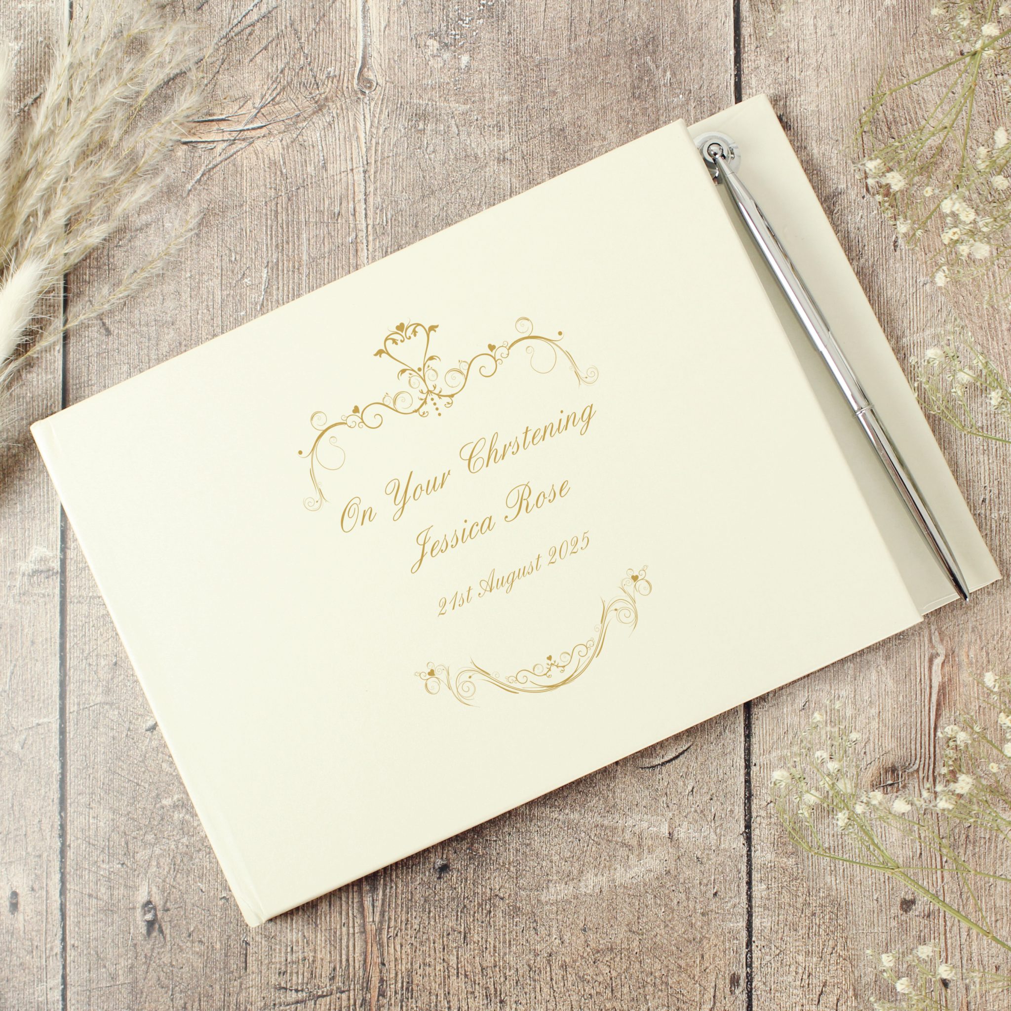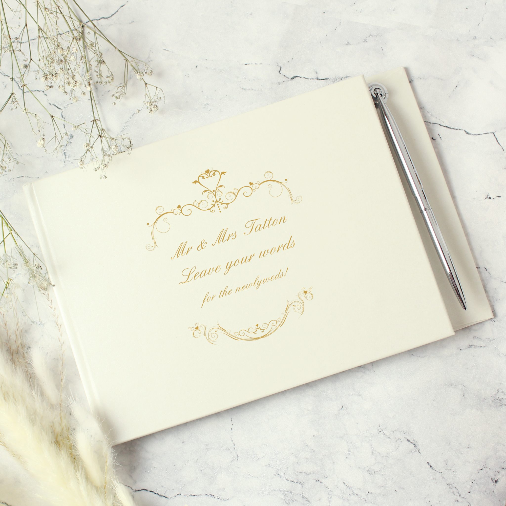 Be the first to review “Personalised Gold Ornate Swirl Hardback Guest Book & Pen” Cancel reply