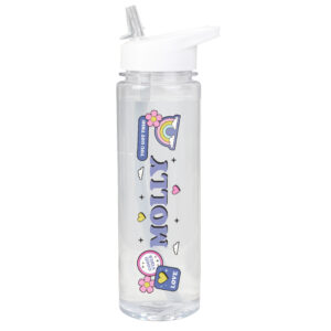 - The water bottle can be personalised with a name up to 12 characters long.
