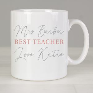 Personalise this lovely mug with 2 message lines with up to 20 characters per line and a name or a role up to 12 characters in the middle that will appear in fixed uppercase.