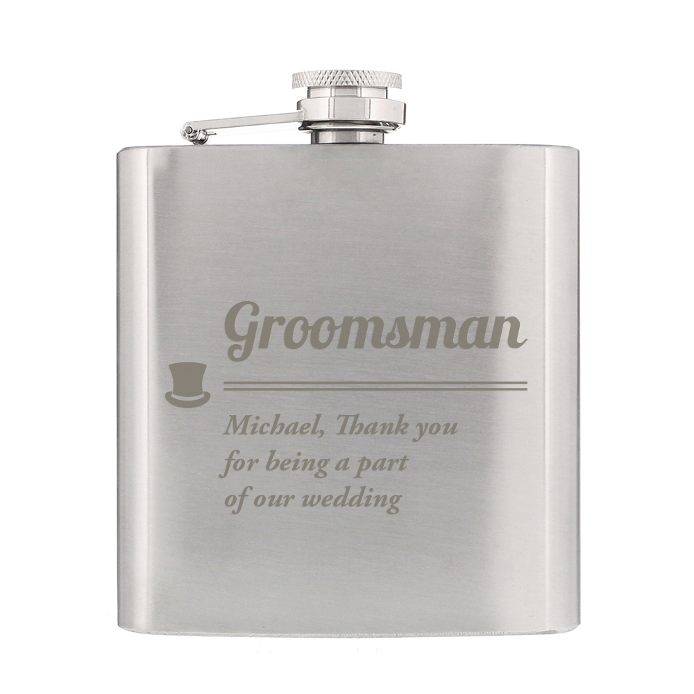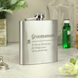 Our Groomsman Hip Flask is an ideal way to commemorate the Groomsman’s big day The flask can be personalised with a message over 3 lines of text, with up to 25 characters per line.