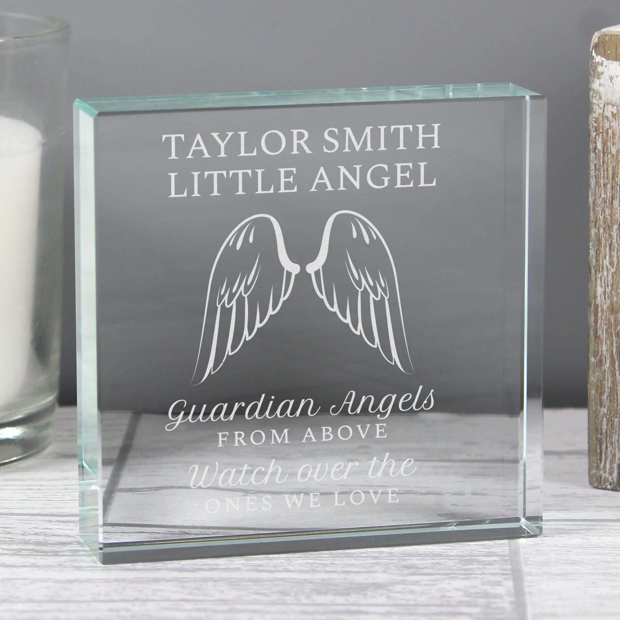 - Please note the words ‘Guardian Angels from above watch over the ones we love’ are fixed text.