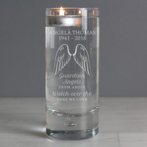 This gorgeous Personalised Angel Wings Floating Candle Holder is ideal for remembering loved ones.