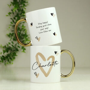 - Styled with a cute gold heart design, this mug is the perfect gift for any occasion!