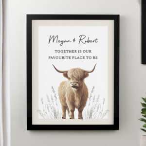 Bring a touch of the Highlands into your home with our stunning Personalised Highland Cow Poster Frame.
