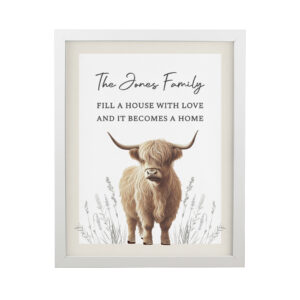 - Featuring a beautifully detailed illustration of the iconic Highland cow, this framed print blends rustic charm with contemporary style.perfect for any living room, bedroom, hallway, or office.