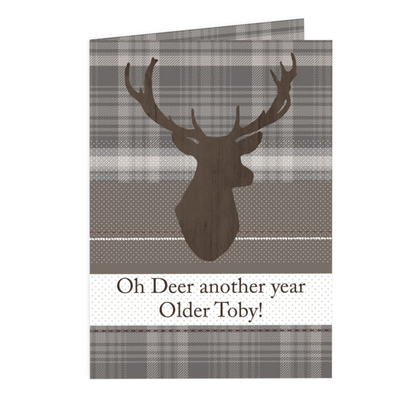 This Highland Stag card is a stylish, rustic surprise that can be personalised to suit any occasion.