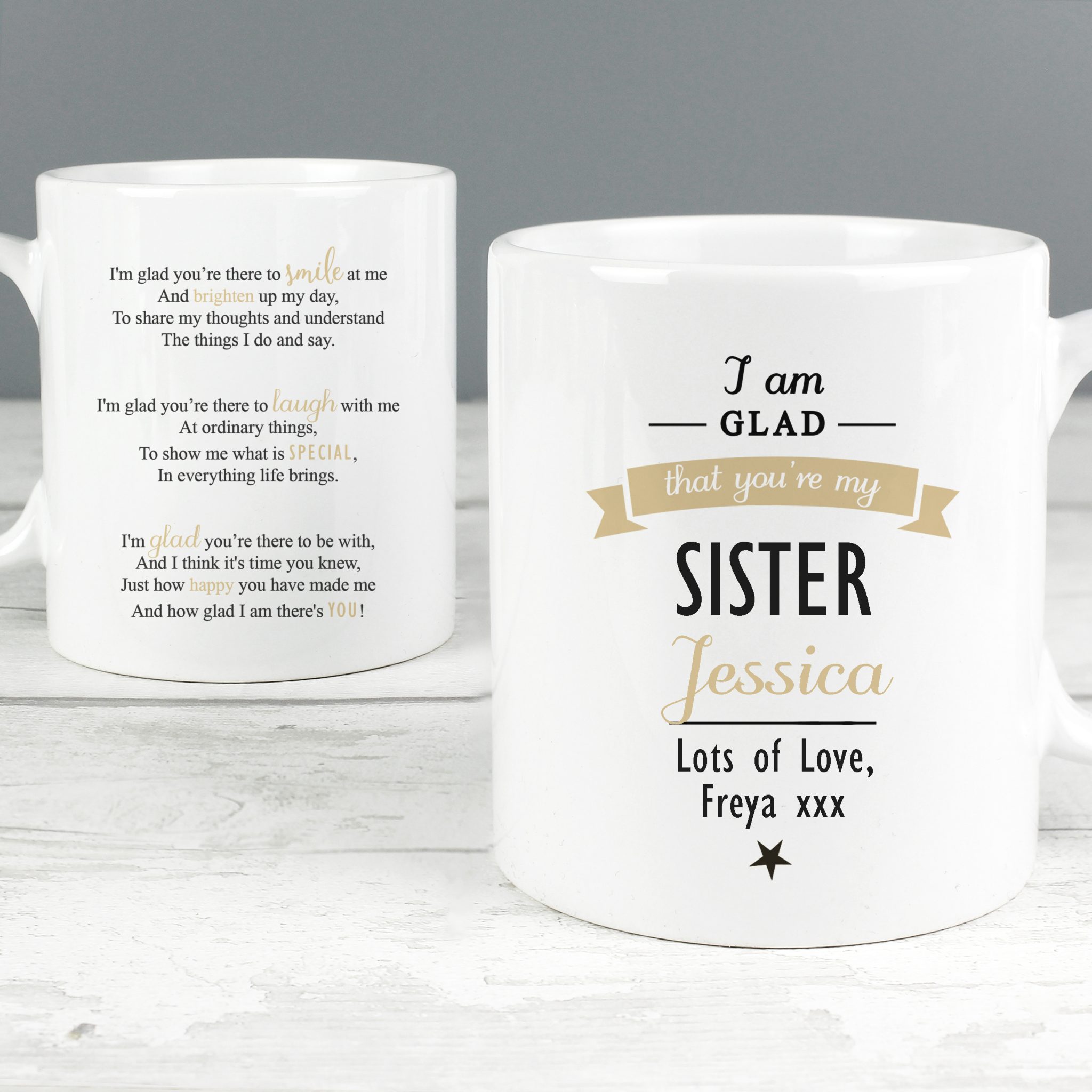 - The poem on the reverse of the mug reads- I’m glad you’re there to smile at me And brighten up my day, To share my thoughts and understand