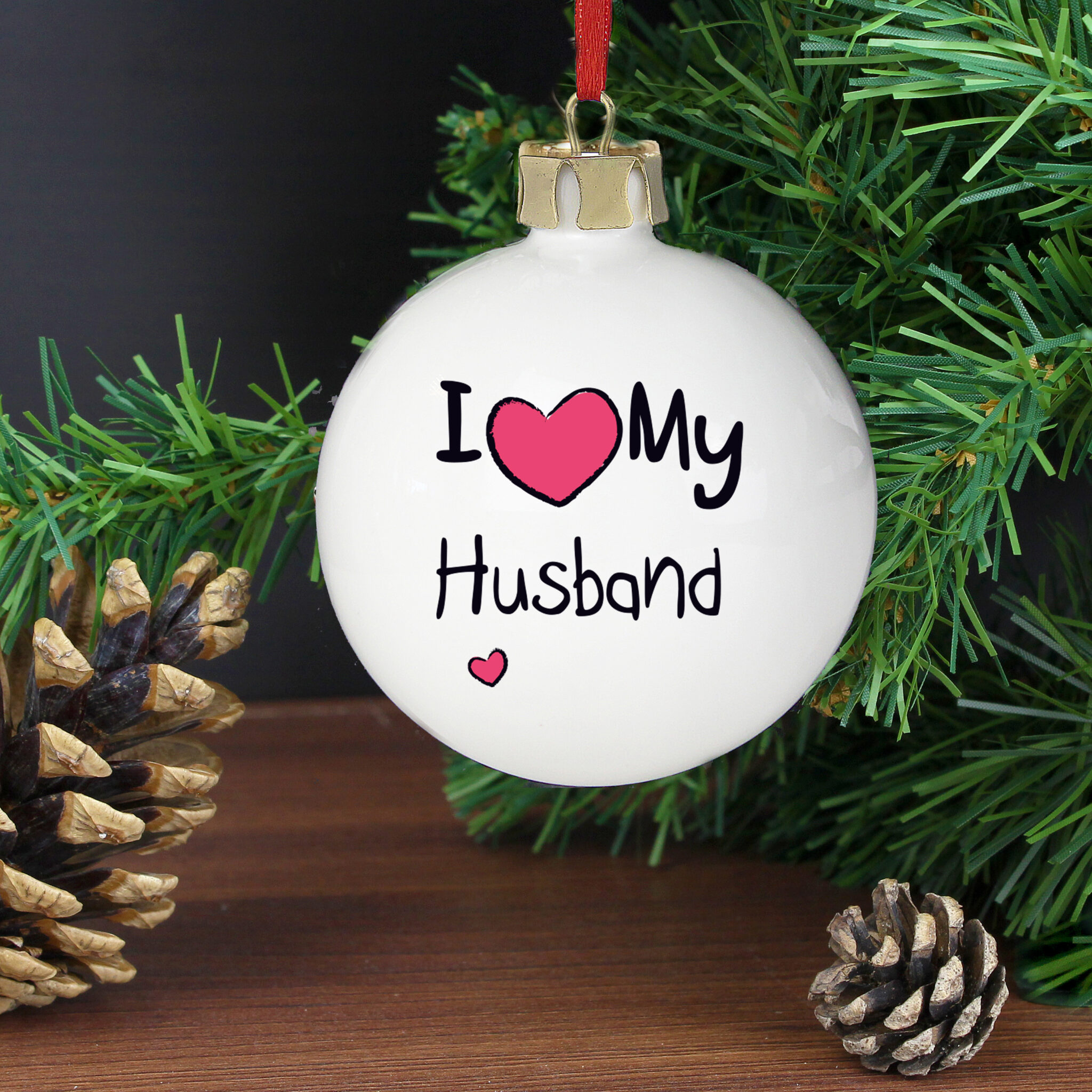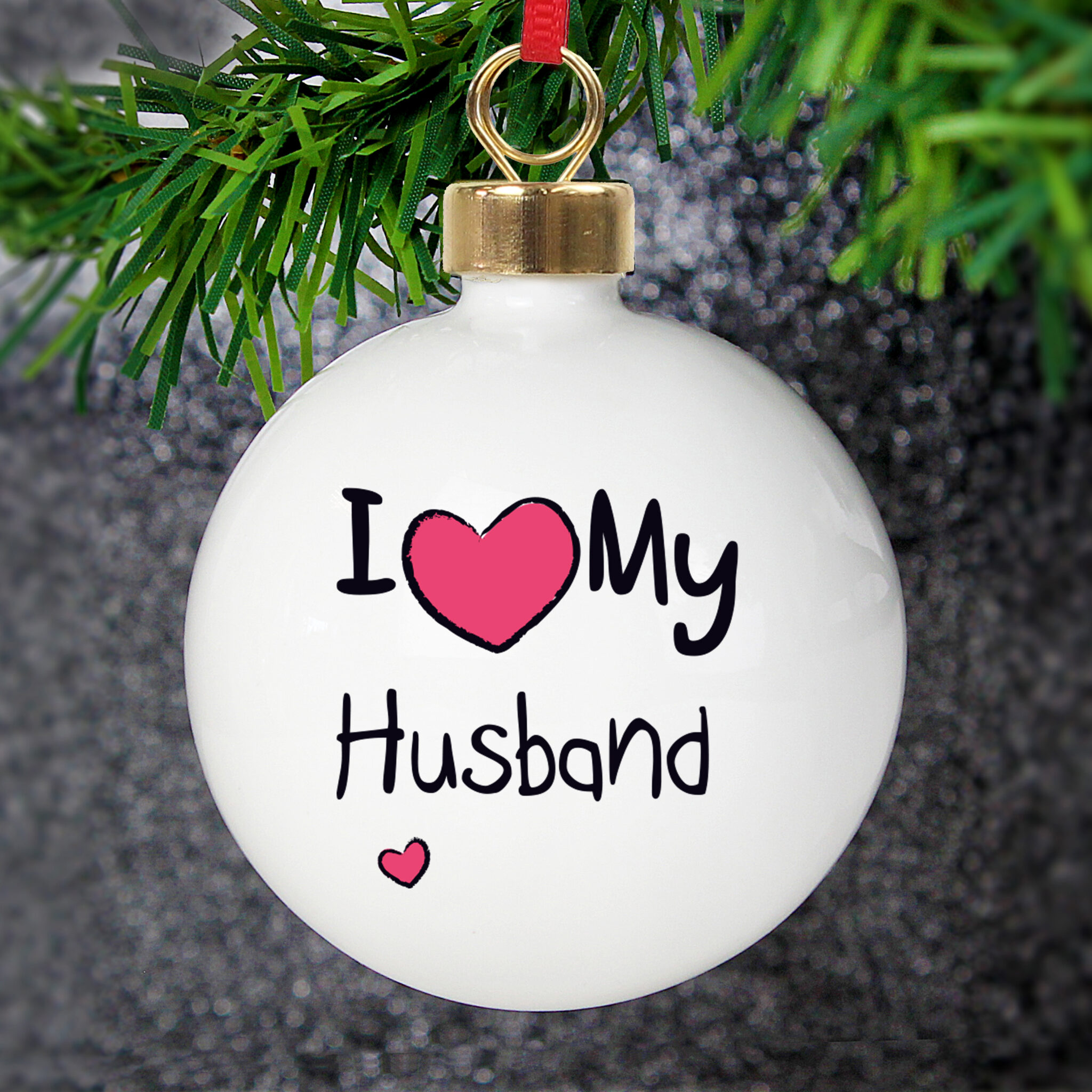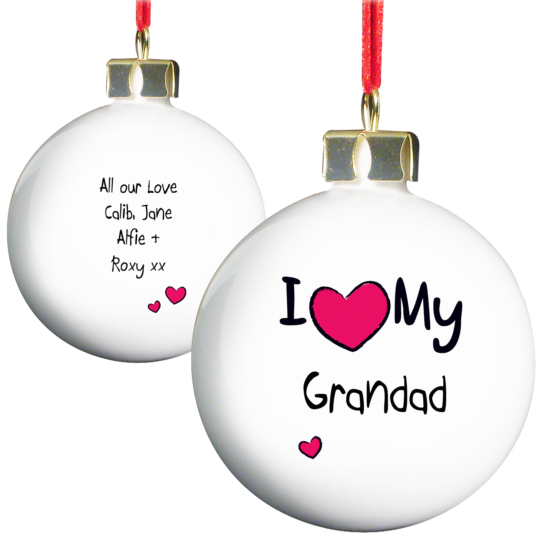 This beautiful bauble with I Heart My design can be personalised with the recipients title on the front, for example: Boyfriend, Girlfriend, Husband, Mum, Granny, Grandad & Friend.