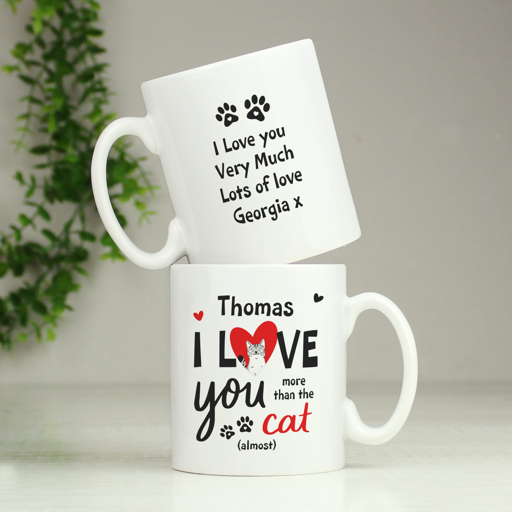 This cute personalised mug features the text “I love you more than the cat” to the front, high praise for a partner who knows how much you love your feline friend!