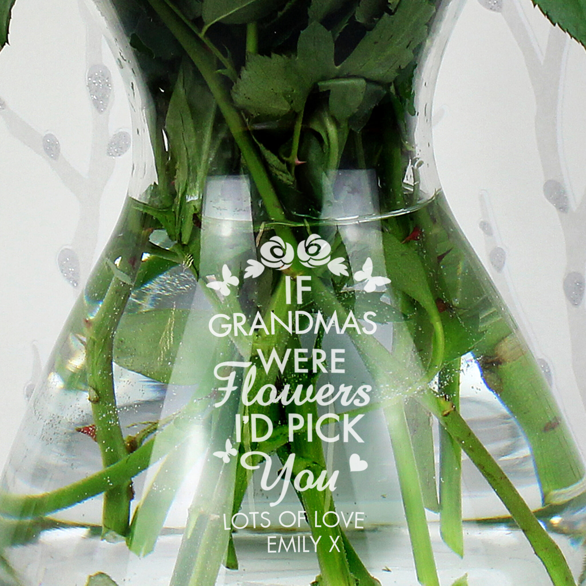 - You can personalise this vase with 3 lines of text up to 15 characters per line.