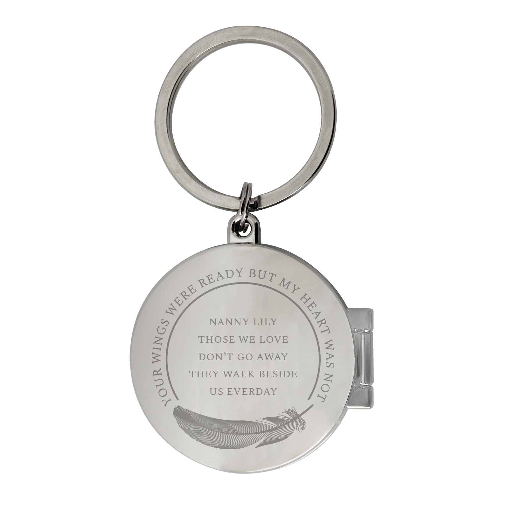 - The keyring has a silver finish and can hold two images sized 3x3cm.