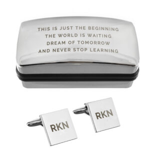 - The cufflink box can be personalised with up to 4 lines of text, each containing up to 25 characters You can then personalise the cufflinks with up to 3 characters.