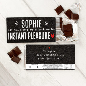 - The text lick me, nibble me & suck me for instant pleasure is a fixed part of the design.