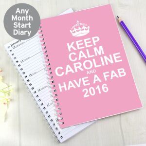 This Keep Calm diary can be personalised with 3 lines of text up to 15 characters per line.
