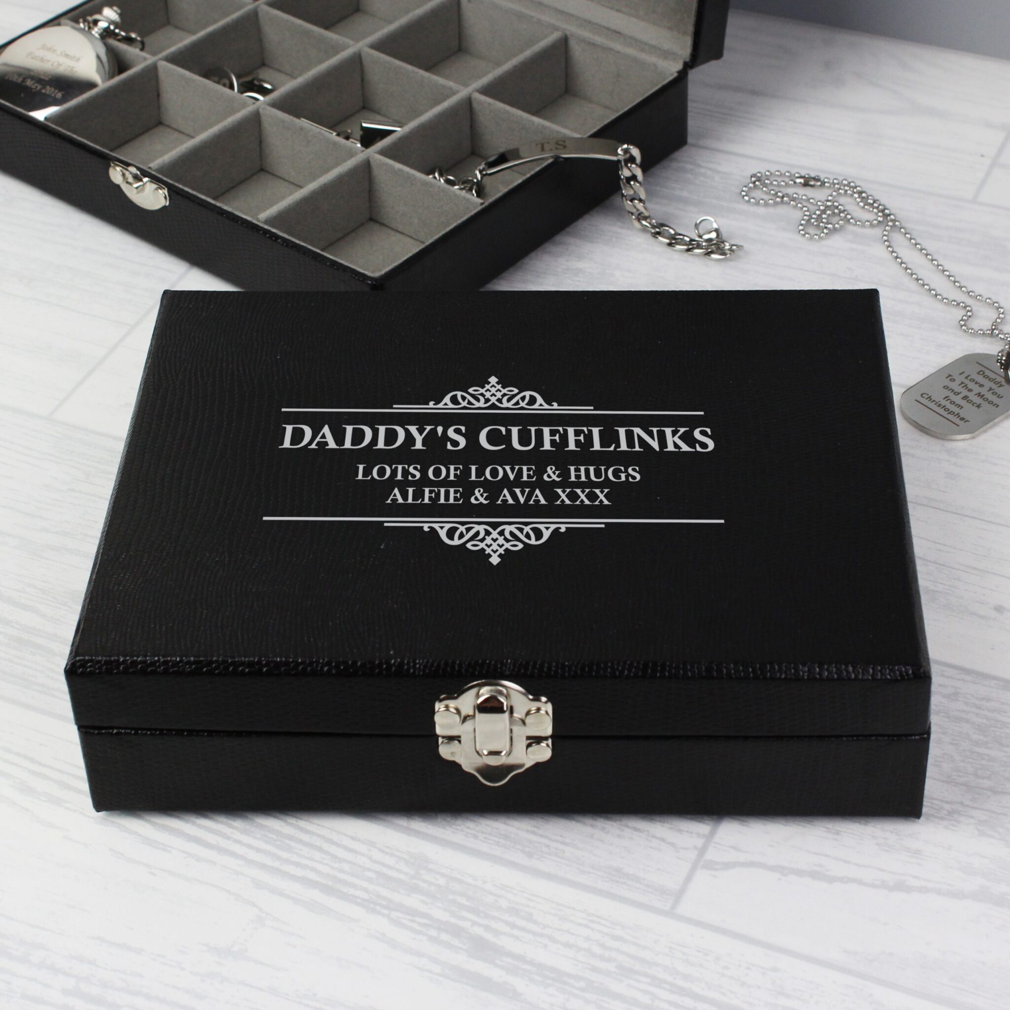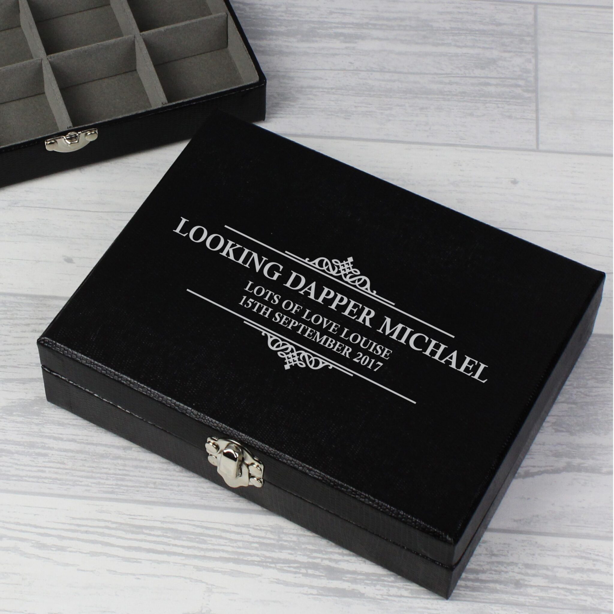 Our Personalised Large Cufflink Compartment Box is a stylish and unique gift for him on any occasion.