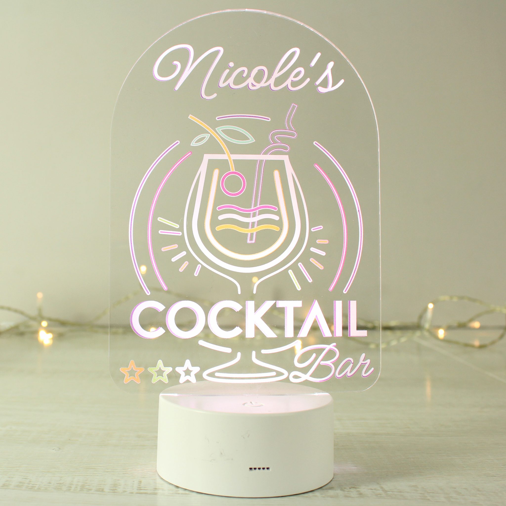 - Please note the personalisation will appear as entered, please avoid using fixed uppercase as this may make the personalisation hard to read. “Cocktail Bar” is fixed text and cannot be changed.