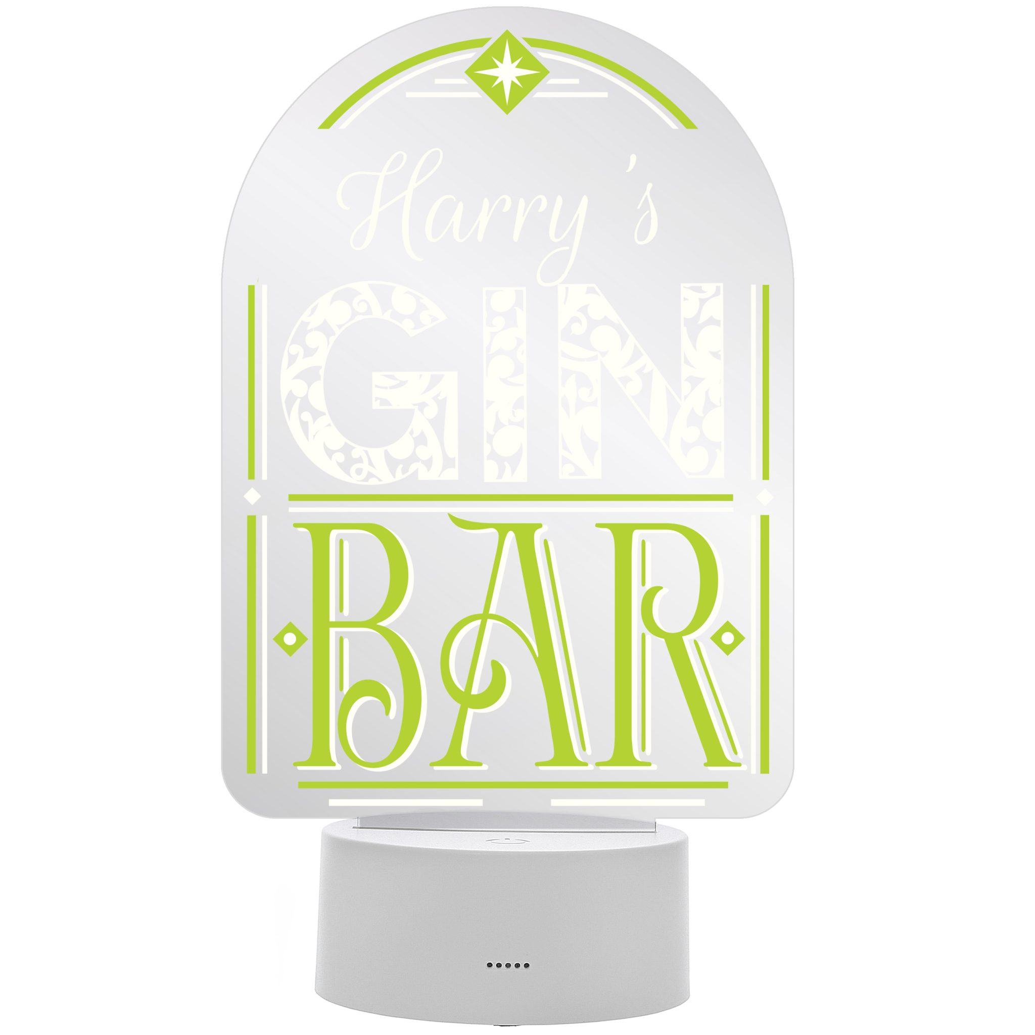 - Please note the personalisation will appear as entered, please avoid using fixed uppercase as this may make the personalisation hard to read. “Gin bar” is fixed text and cannot be changed.