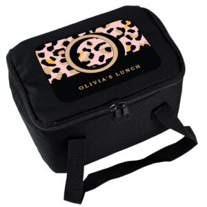 Personalised Leopard Print Black Lunch Bag