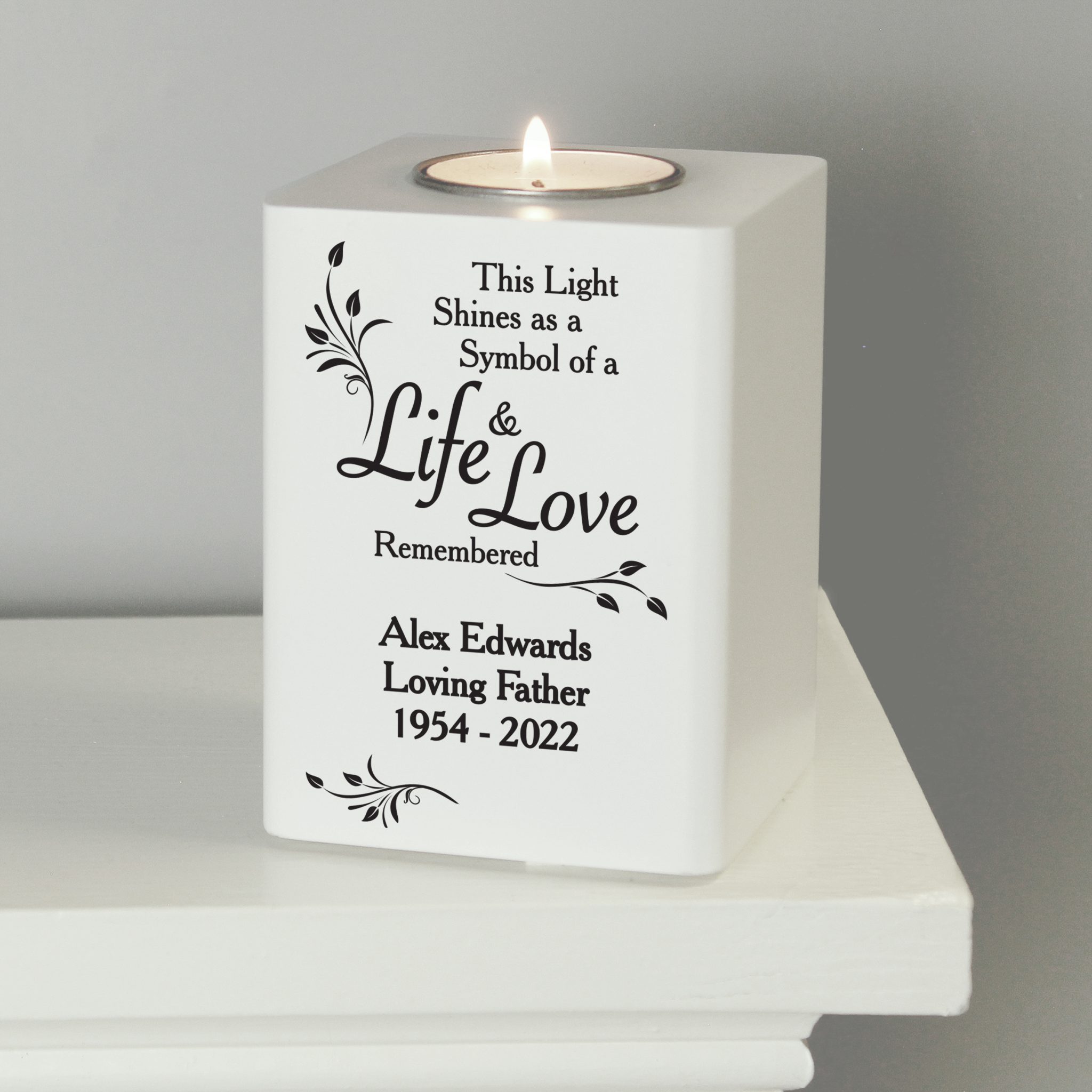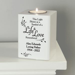 - Personalisation will appear as entered. “This light shines as a symbol of life & love remembered” is fixed text and cannot be changed.
