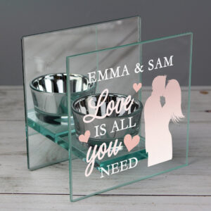 Our Personalised Love is All You Need Mirrored Glass Tea Light Holder is a thoughtful and modern gift which will look great displayed around the home.