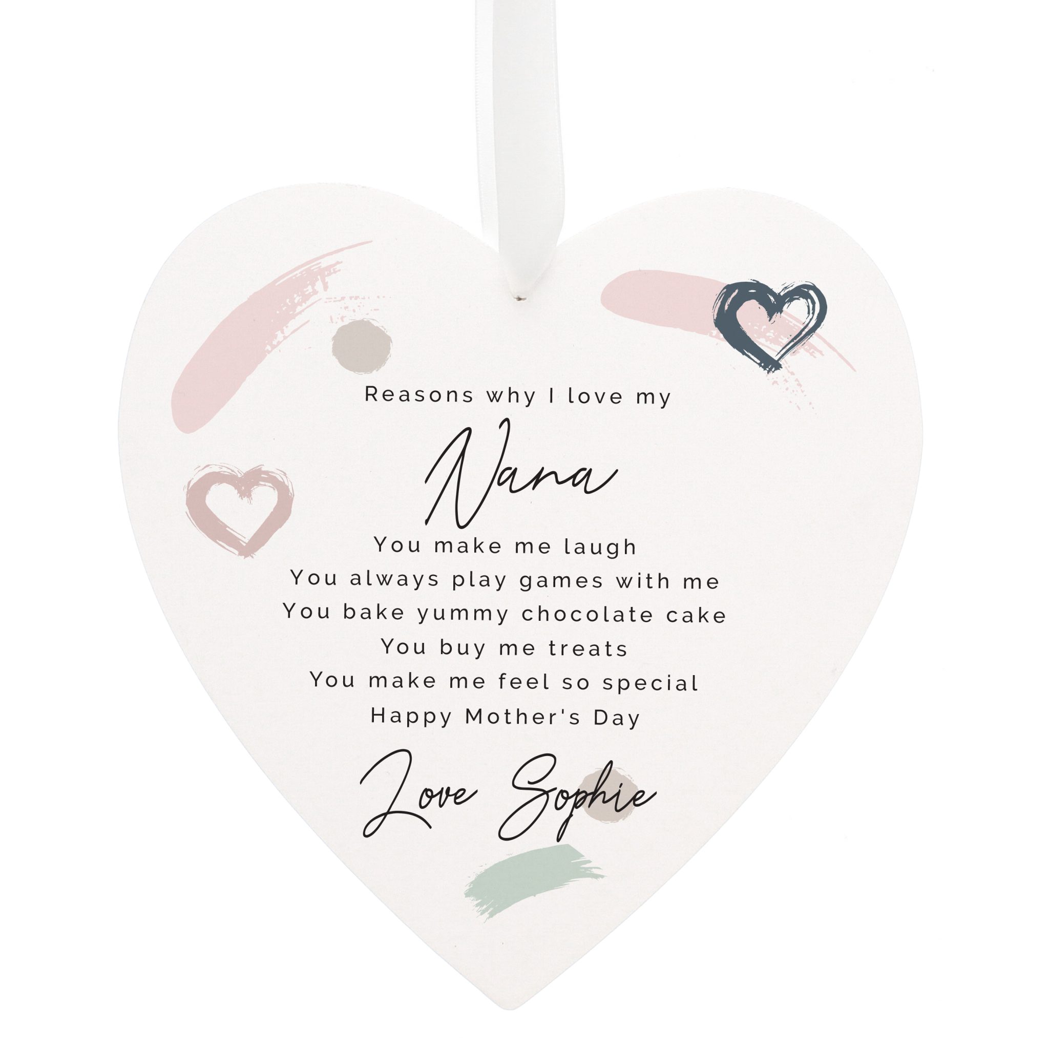 Line 9 [Script] – Up to 15 Characters The text will appear as entered. - This large heart shaped decoration is made from wood with ribbon included.