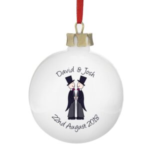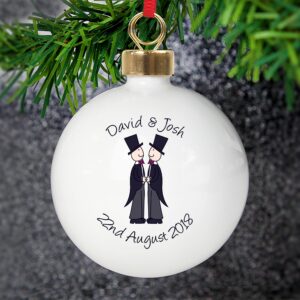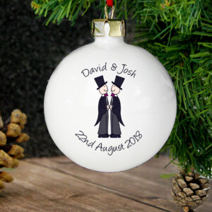 This fun keepsake bauble is the perfect way to remember your civil partnership or wedding, or to celebrate your 1st Christmas together.