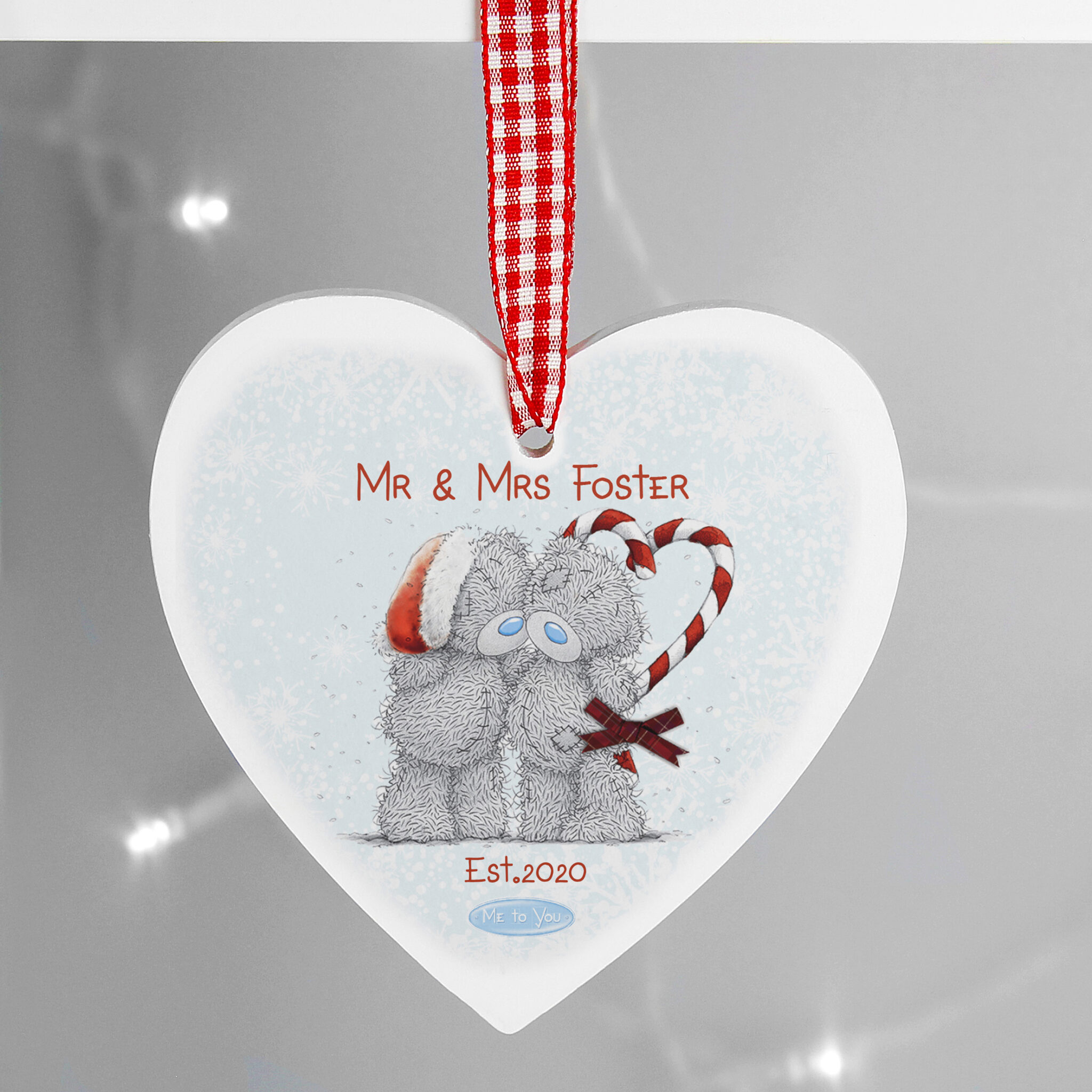 Personalised Me To You Couple Christmas Wooden Heart Decoration
