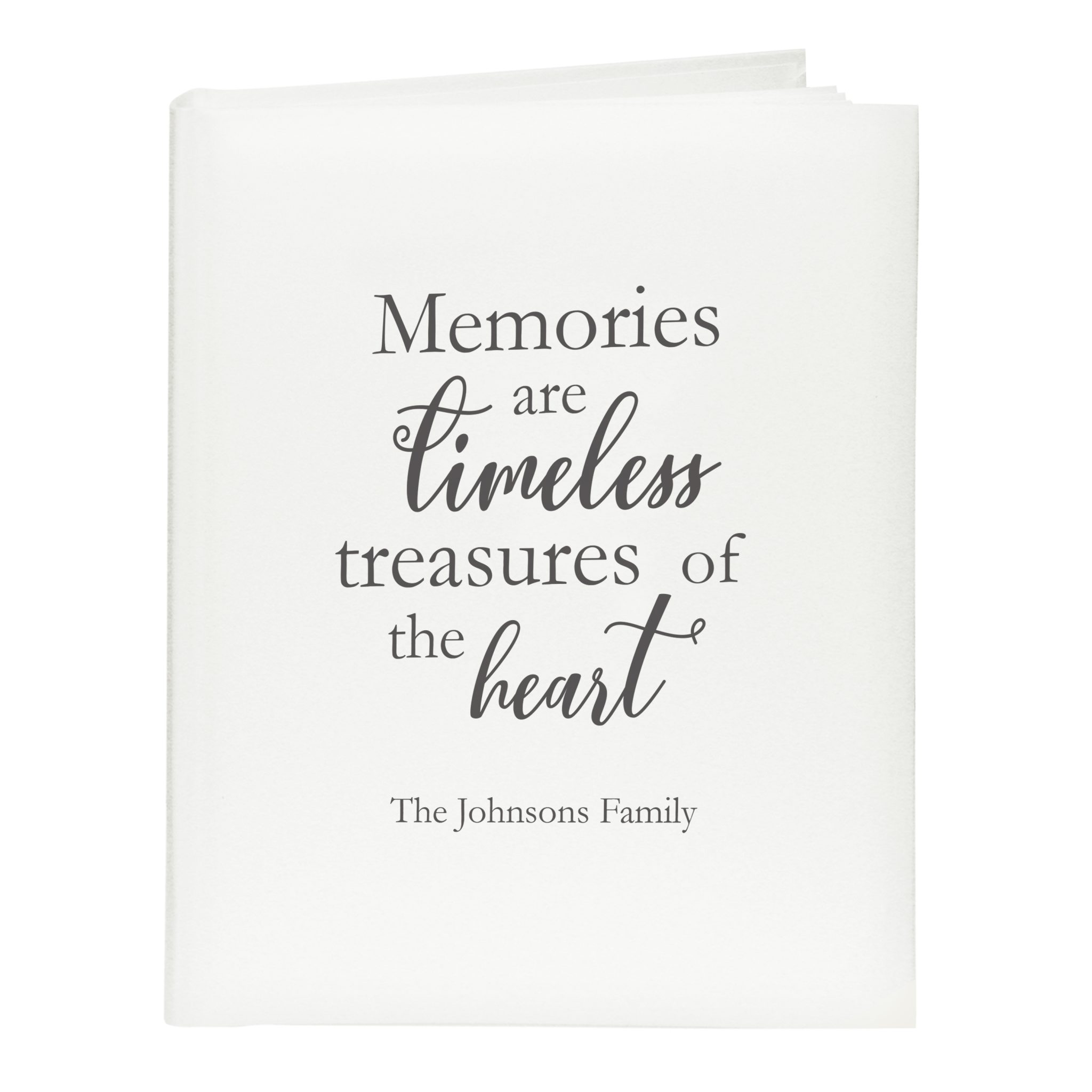 - The words ‘Memories are timeless treasures of the heart’ are fixed and cannot be amended.
