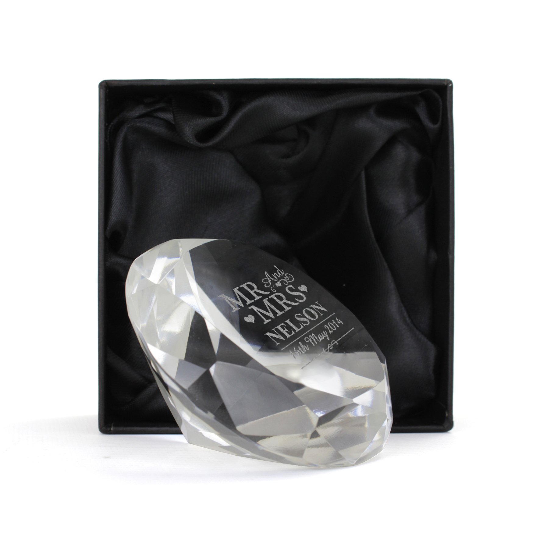 - This paperweight comes in a black silk style lined box.