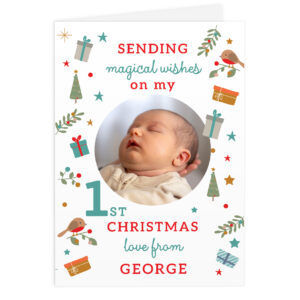 - Each card is beautifully designed with the fixed text ‘Sending magical wishes on my’ ‘1st Christmas love from’ on the front, making it the perfect keepsake for a baby’s very first Christmas.
