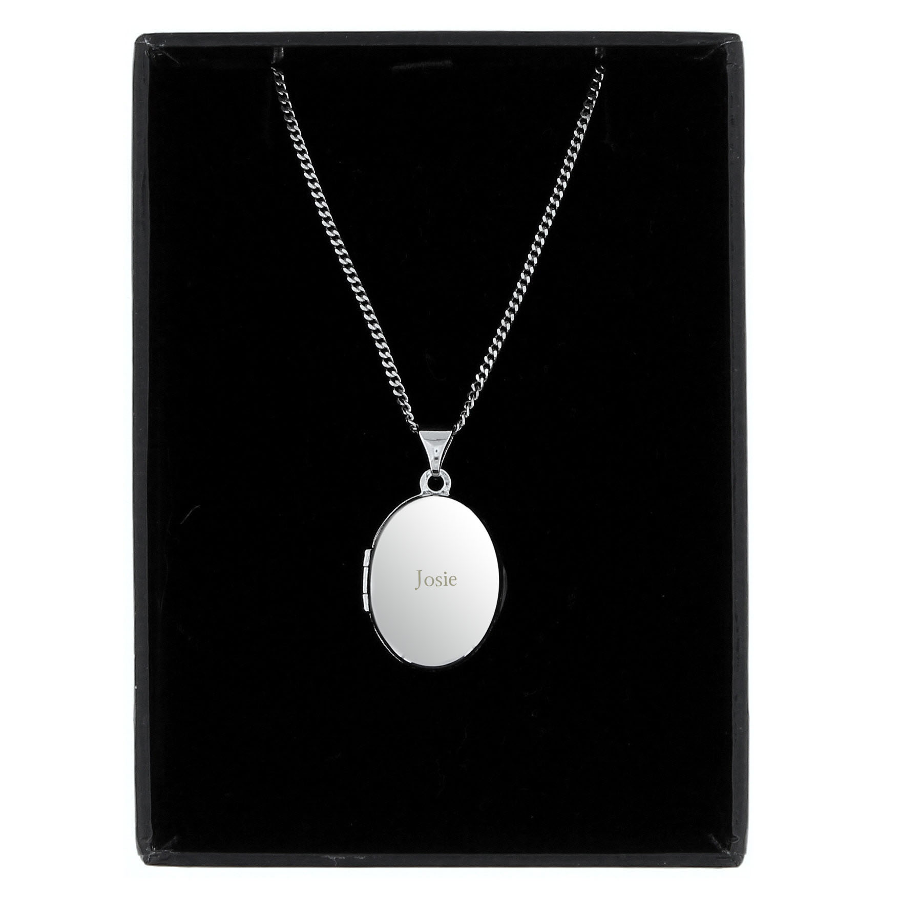 - Two photographs can be inserted into this oval-shaped locket.