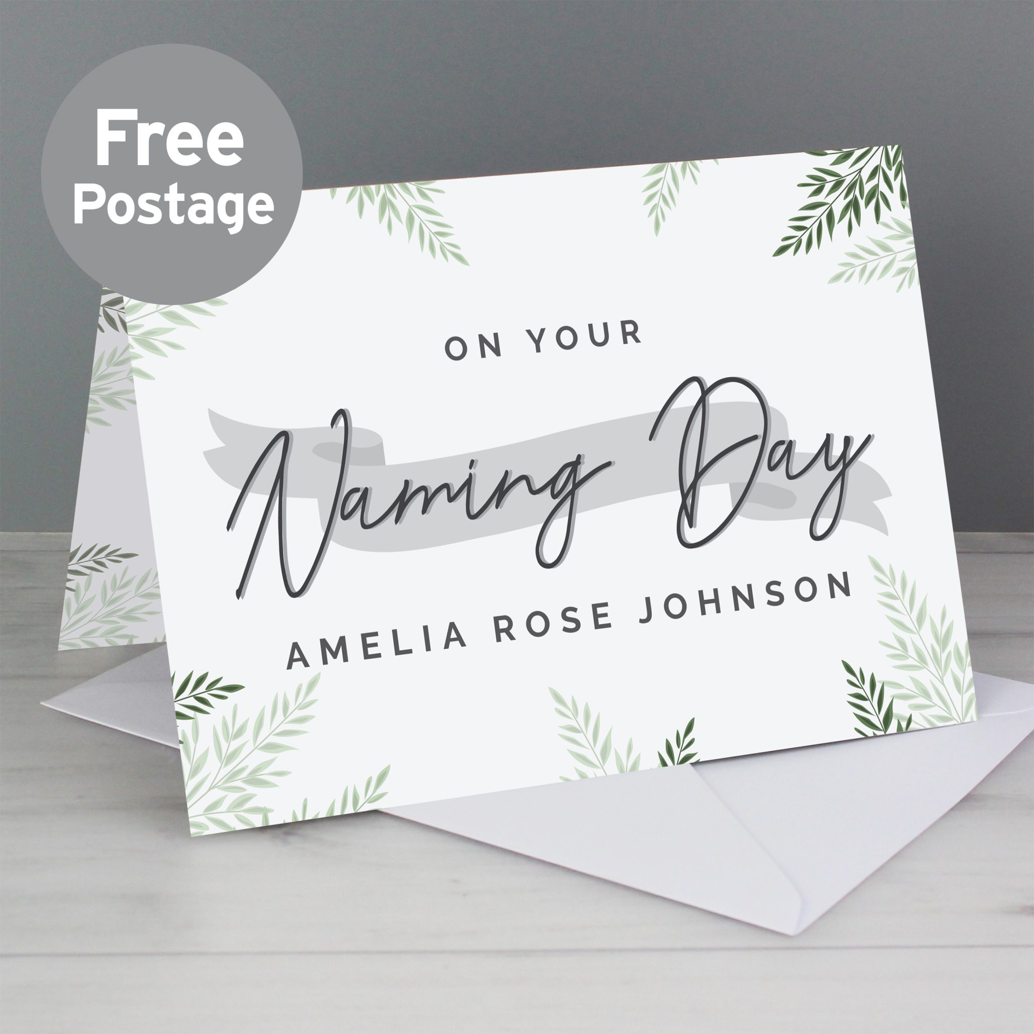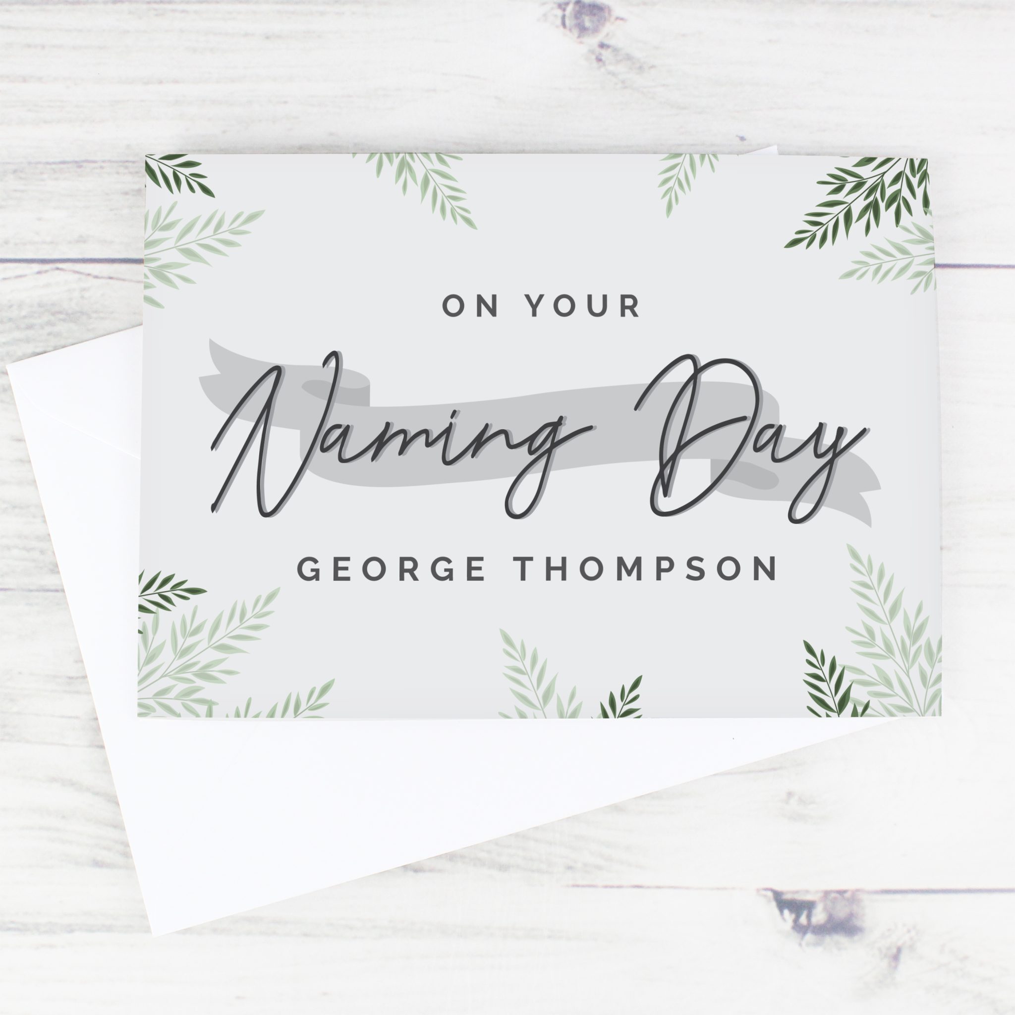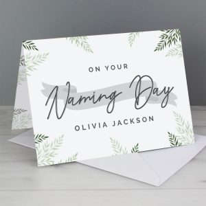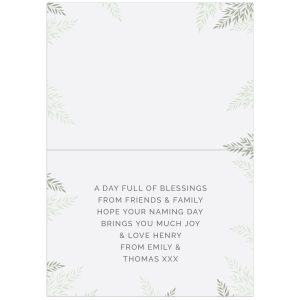 - The neutral toned card, has fresh and modern feel. ‘On Your Naming Day’ is a fixed part of the design and cannot be amended.