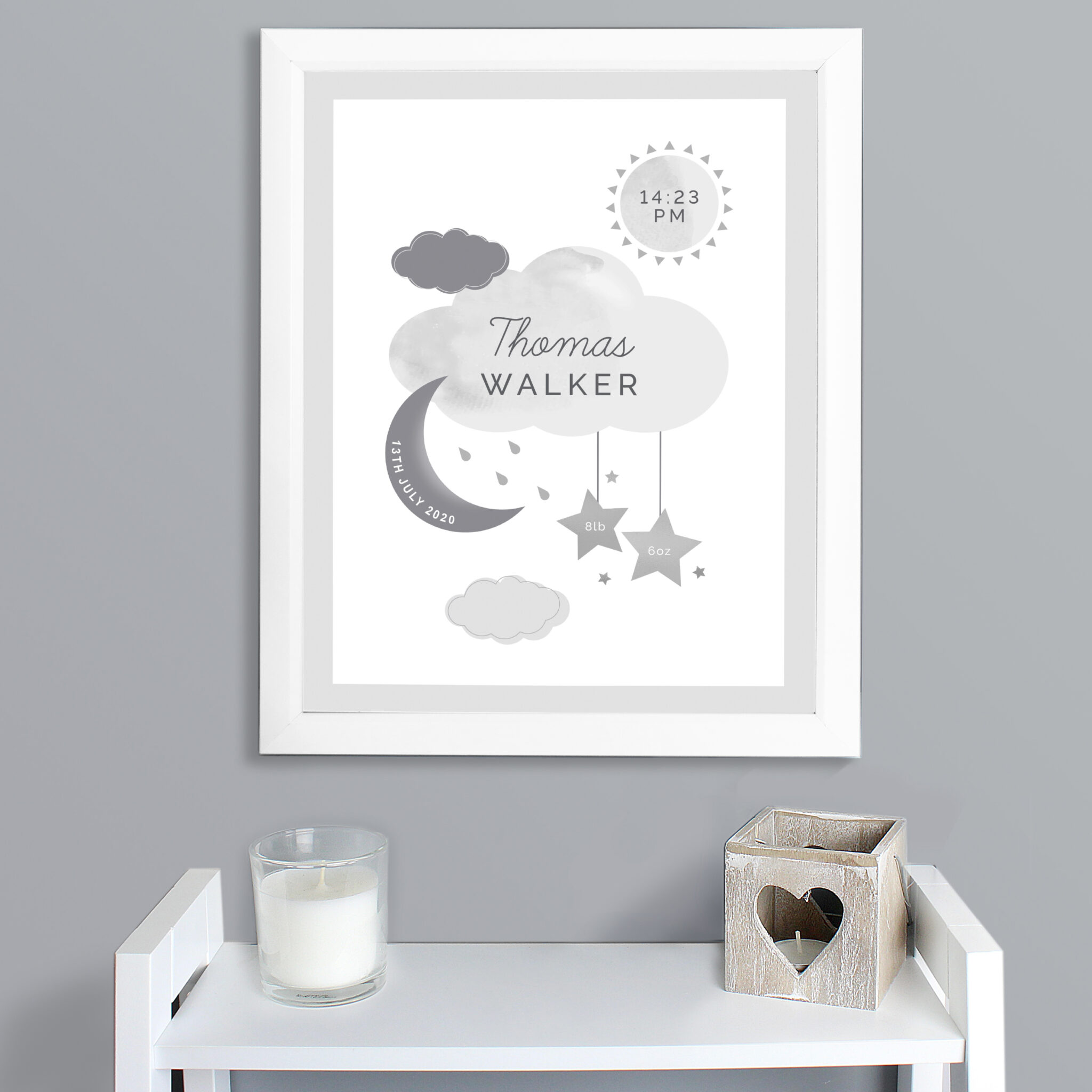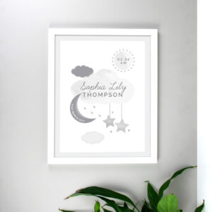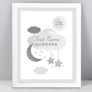 This gorgeous Personalised New Baby White Framed Print is a fantastic way of welcoming a little one into the world.