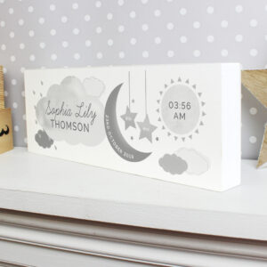 Personalised New Baby Moon & Stars Wooden Block Nursery Sign