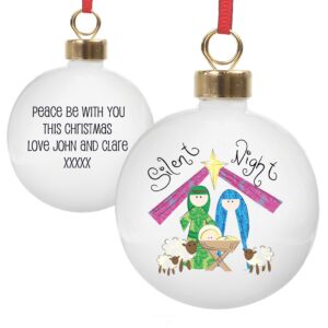 This ceramic bauble makes the perfect addition to any Christmas tree whats more you can personalise it with any message you choose on the reverse over 4 lines (20 characters each line)