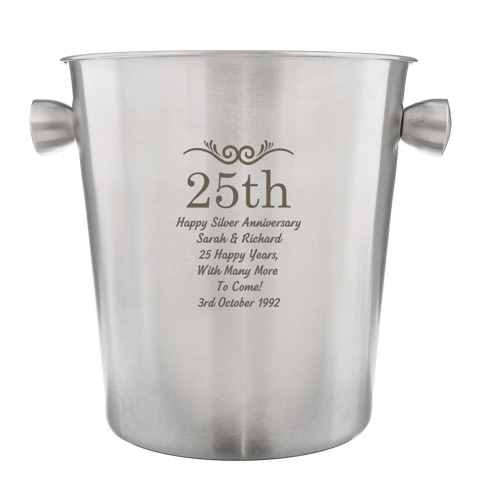 - Personalise this Stainless Steel Ice Bucket with a year or number up to 5 characters .