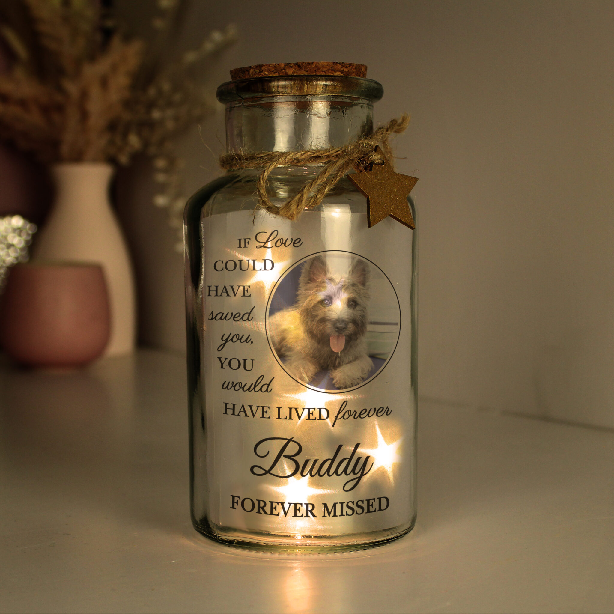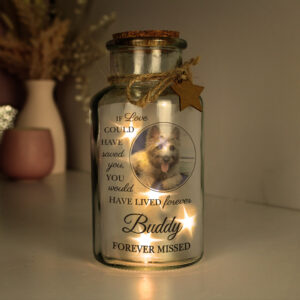 Personalised Pet Memorial Photo Upload LED Light Up Jar