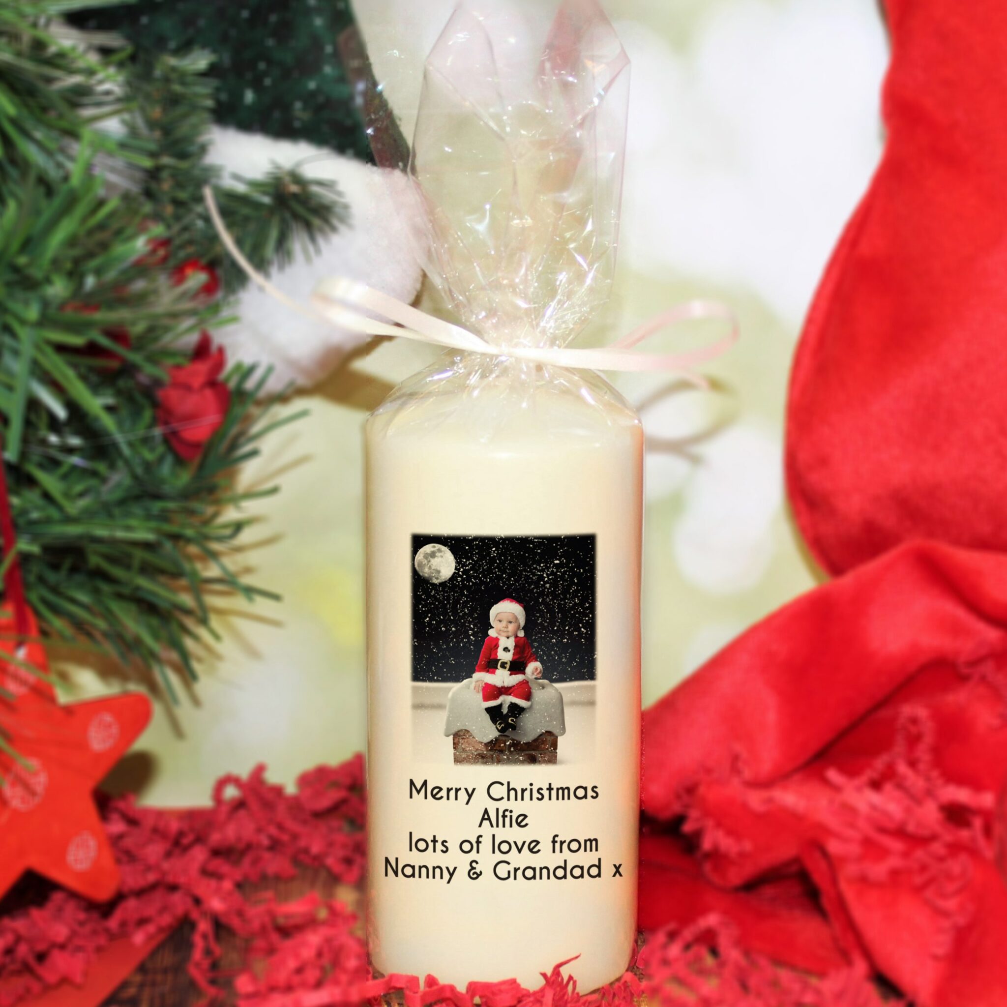 Any photograph, whether colour or black & white, can be incorporated onto the wax of this high quality candle along with your message of up to 25 characters per line over 4 lines.