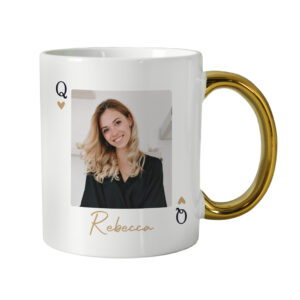 Sip in style with this personalised Photo Upload Queen mug, featuring a striking gold handle.