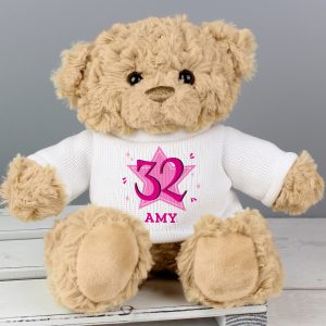 This cute and cuddly teddy bear is perfect for celebrating a big birthday!