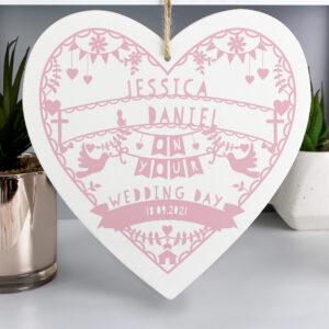 Personalised Pink Papercut Style Large Wooden Heart