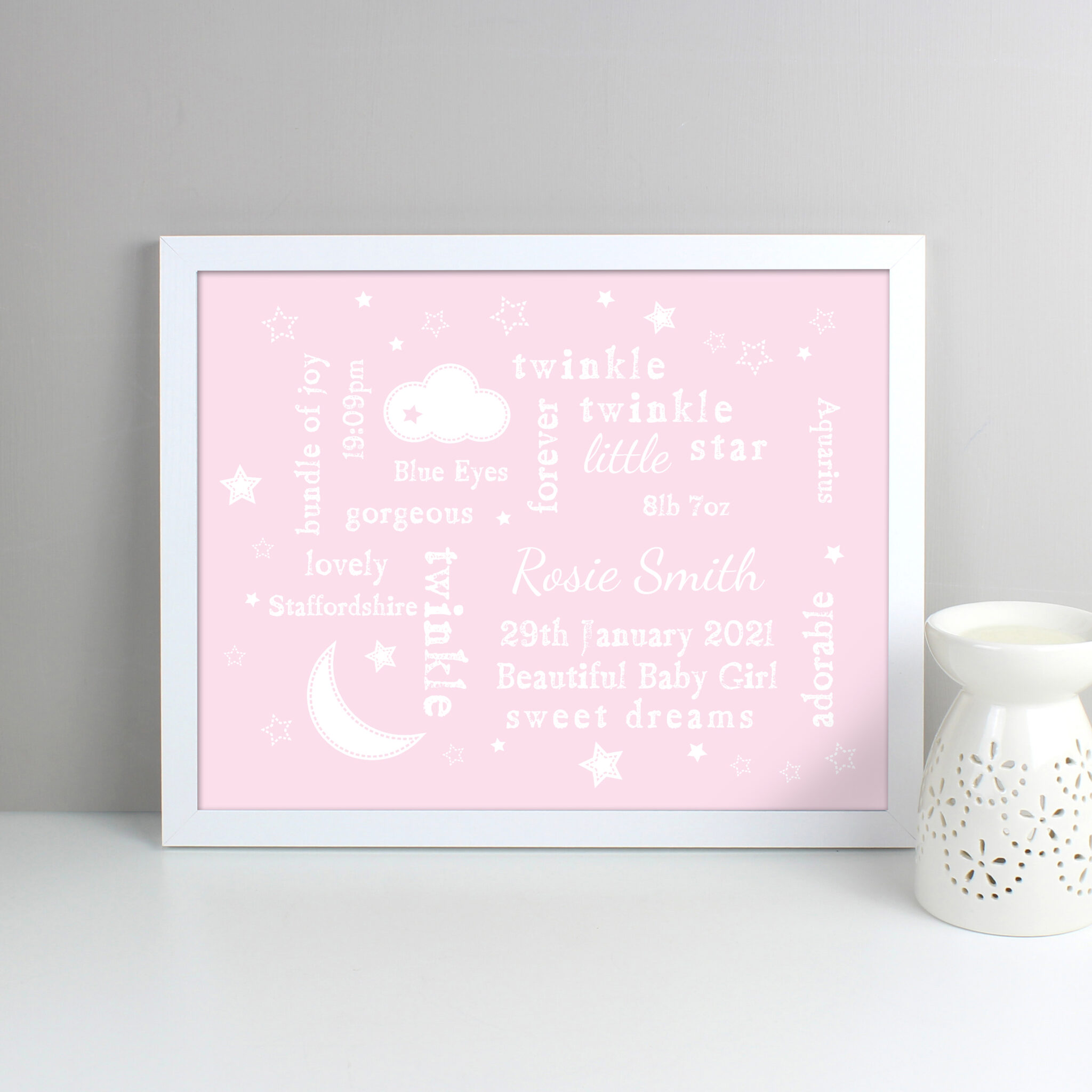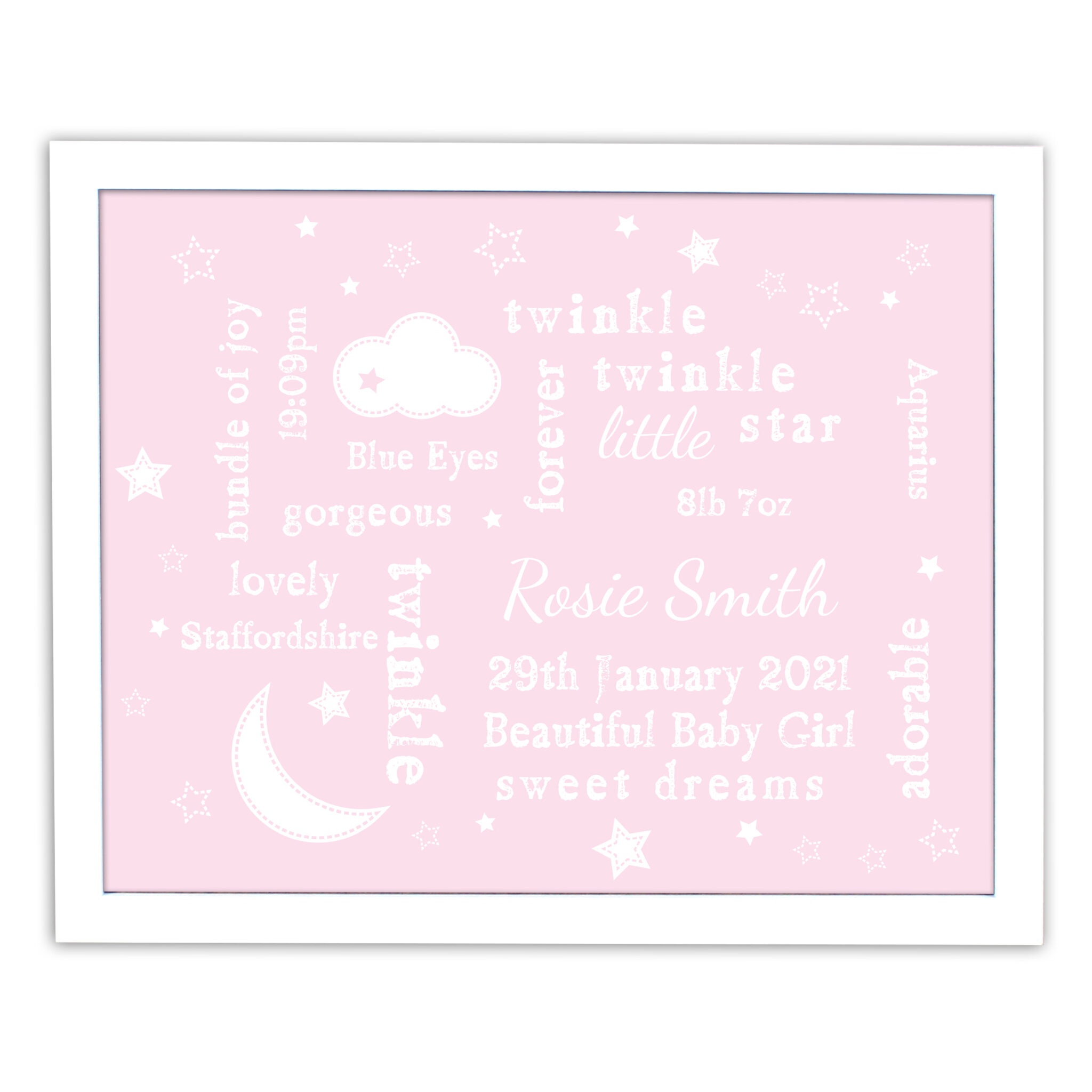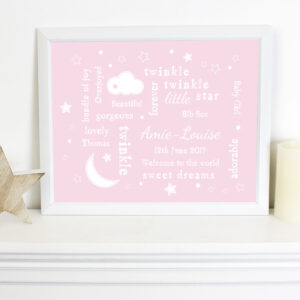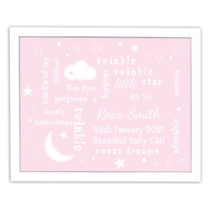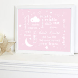Our Twinkle Twinkle Typography Pink Framed Print will look great hung in a little girls bedroom or a nursery!