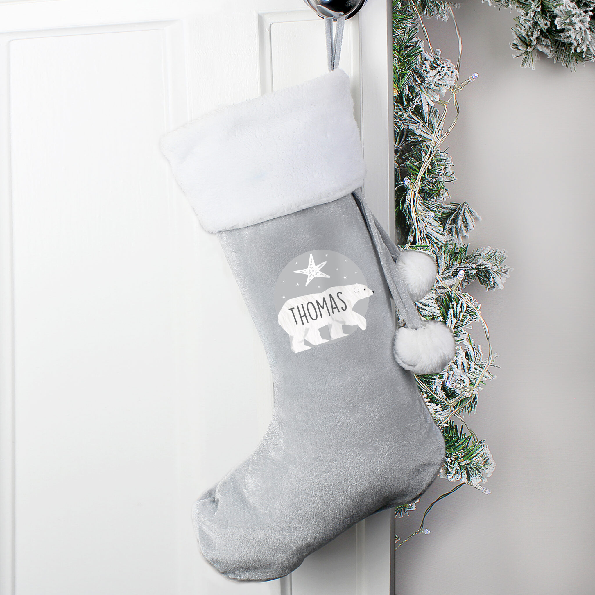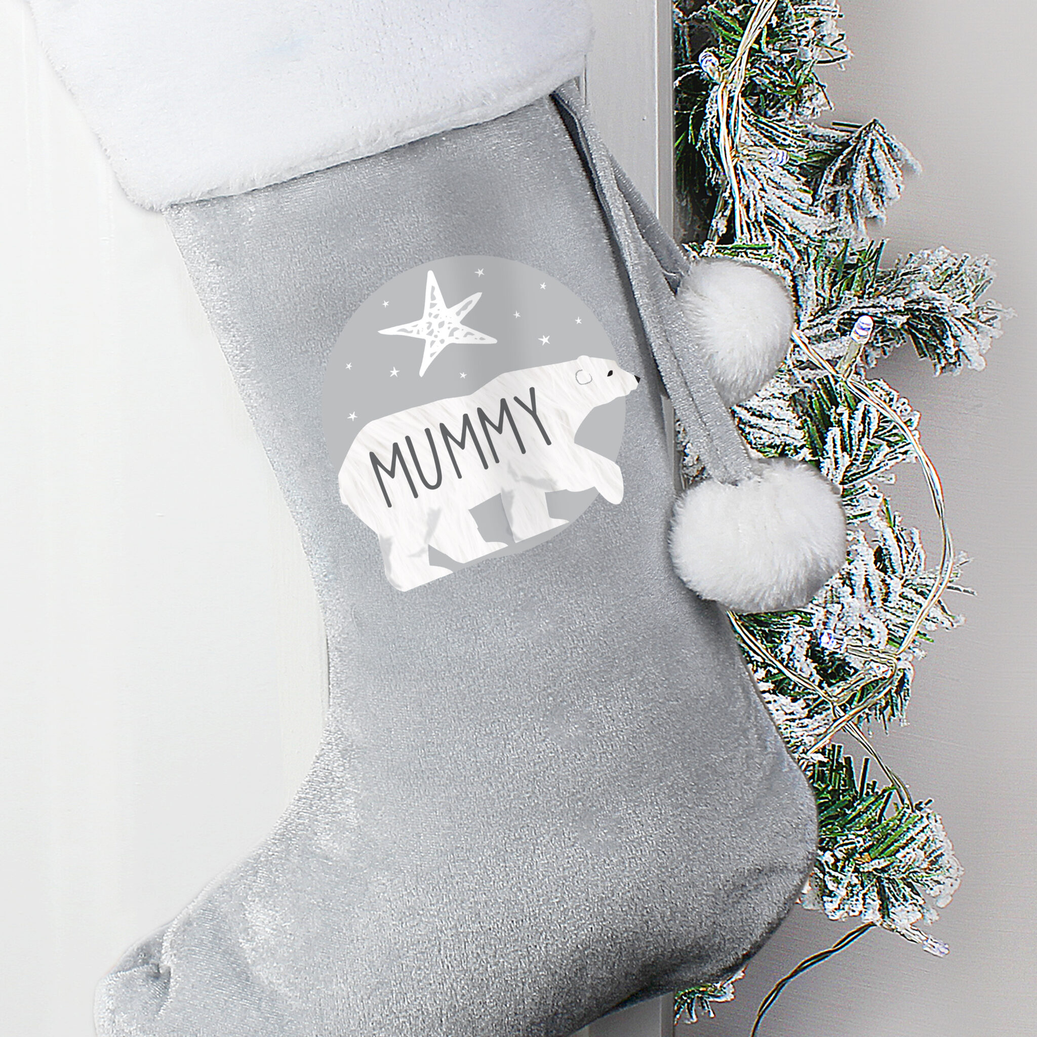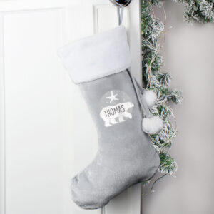 Personalised Polar Bear Luxury Silver Grey Stocking
