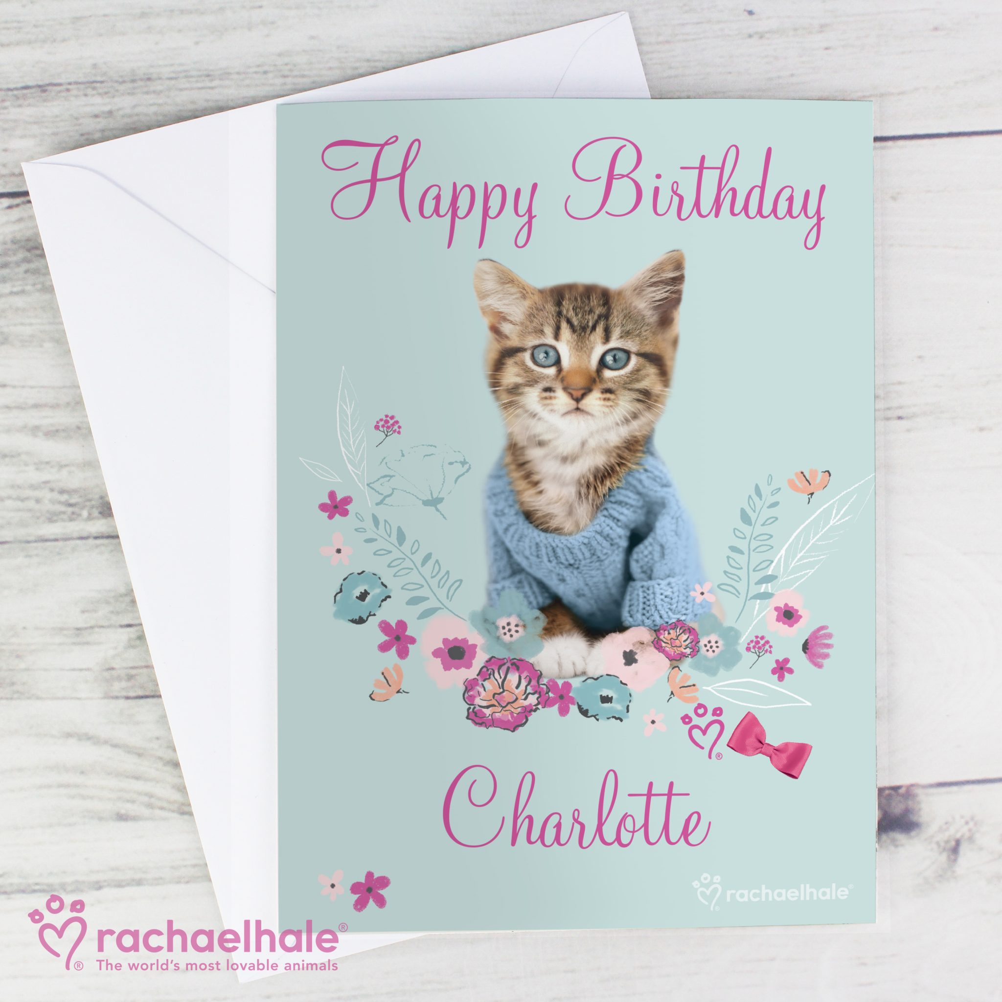 - The front of this card can be personalised with a message at the top, with up to 20 characters and a name at the bottom, with up to 20 characters.